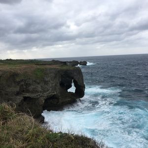 万座毛でまさかの暴風雨。北風が冷たく体感温度10度。