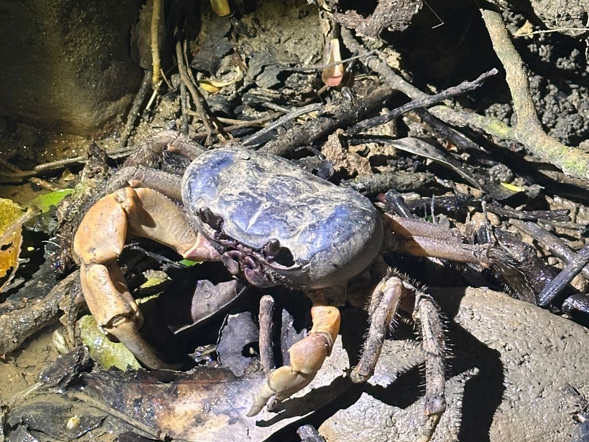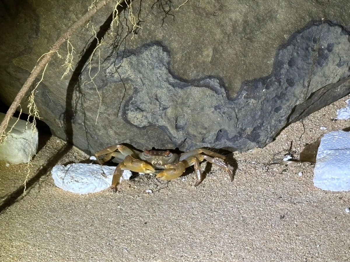 1月の寒い時期にツアーに参加したので、楽しめるのか心配でしたが、ガイドの方が安全に案内してくださり、ヤシガニやカエルやカニなどの生き物を見ることができました。