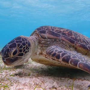 想像していたよりたくさんのウミガメに会うことができました。もくもくと藻を食べる姿が大変可愛かったです。