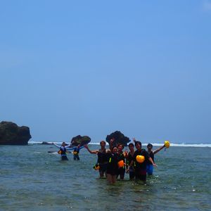 グループ毎に写真も撮っていただき良い記念になりました。海の中を行くツアーでしたが、参加者の方々もソーシャルディスタンスをとり安全に参加できたと思います。