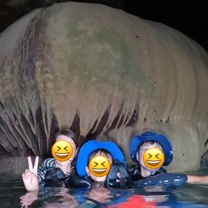家族で参加しましたが、子供から大人まで楽しめるツアーでした。ガイドのけいさんが、鍾乳洞のことだけでなく海のことなど細かに教えてくださり、とても素敵な時間を過ごせました!最後にはツアー中に撮ってくださったたくさんの写真や動画を無料でいただけました。良い旅の思い出になりました