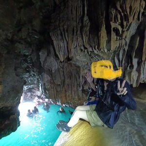 駐車場にしてから歩きでボラガービーチに向かいました。そこから鍾乳洞までカヌーで10分くらい漕ぎ到着。途中波でカヌーが傾いたり、岩にぶつかりそうになったりしたのも、スリルがあって楽しかったです。