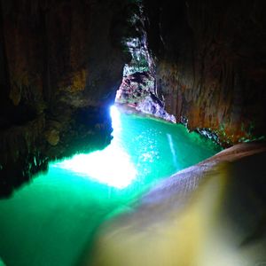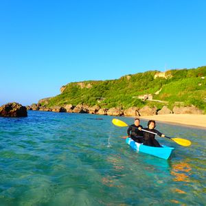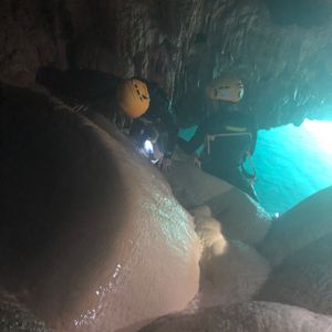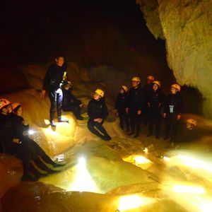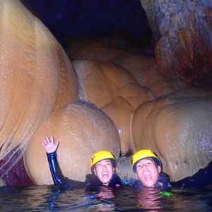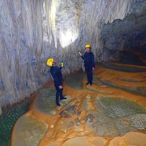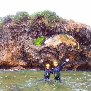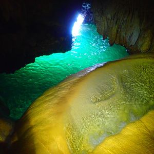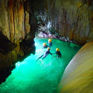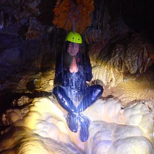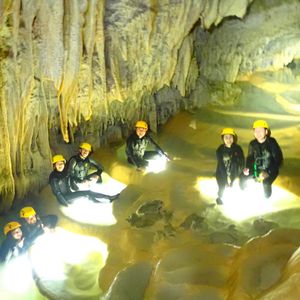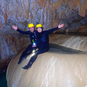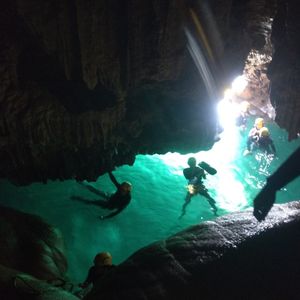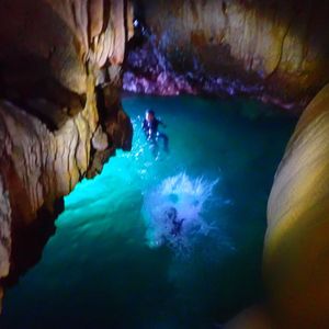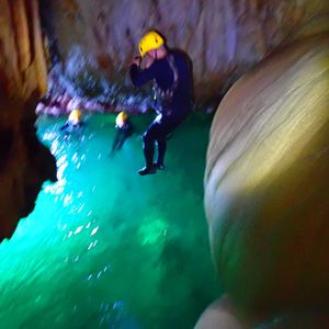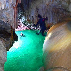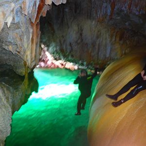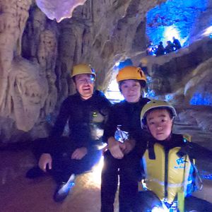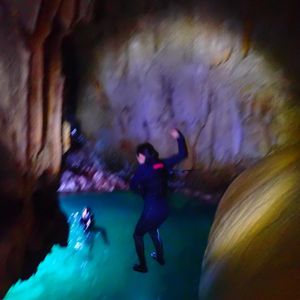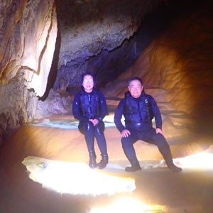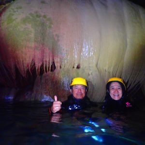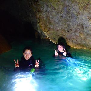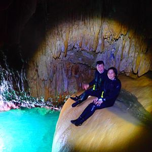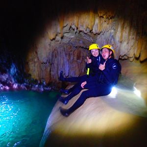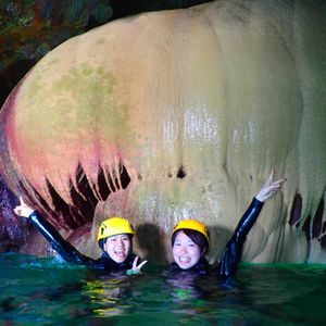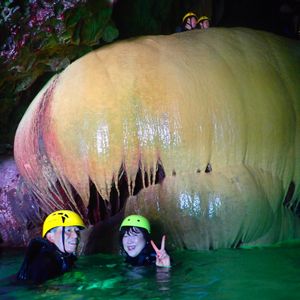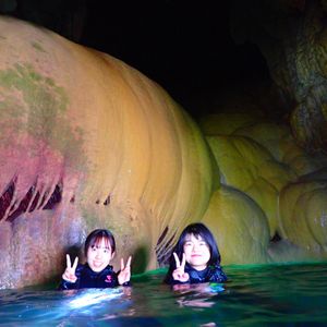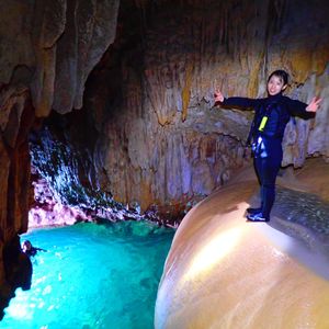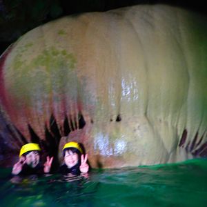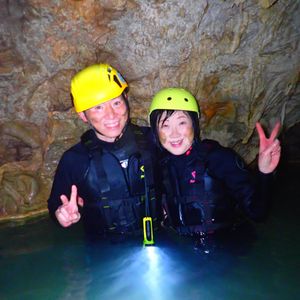 母と二人で参加しました。コロナ禍での参加ということで感染対策を心配していましたが、マスクの着用は無かったもののソーシャルディスタンスがしっかり取れていたので、安心して楽しめました!カヌーを漕いだり、鍾乳洞に登ったりと体力は要りましたが、ガイドさんがしっかりサポートしてくれたので、どの年代の人も参加できると思います。自分的には鍾乳洞から飛び降りた場面がスリリングで一番面白かったです!その他にも神秘的な場所がたくさんあったので、行けば願い事が叶いそうな雰囲気でした!