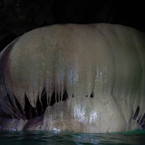 ビーチからカヌーで洞窟まで行き、洞窟内をライトで照らしながらトレッキング。