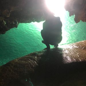 神秘的な洞窟までは海の中を歩いて行きますが思いの外、水は暖かかったです。