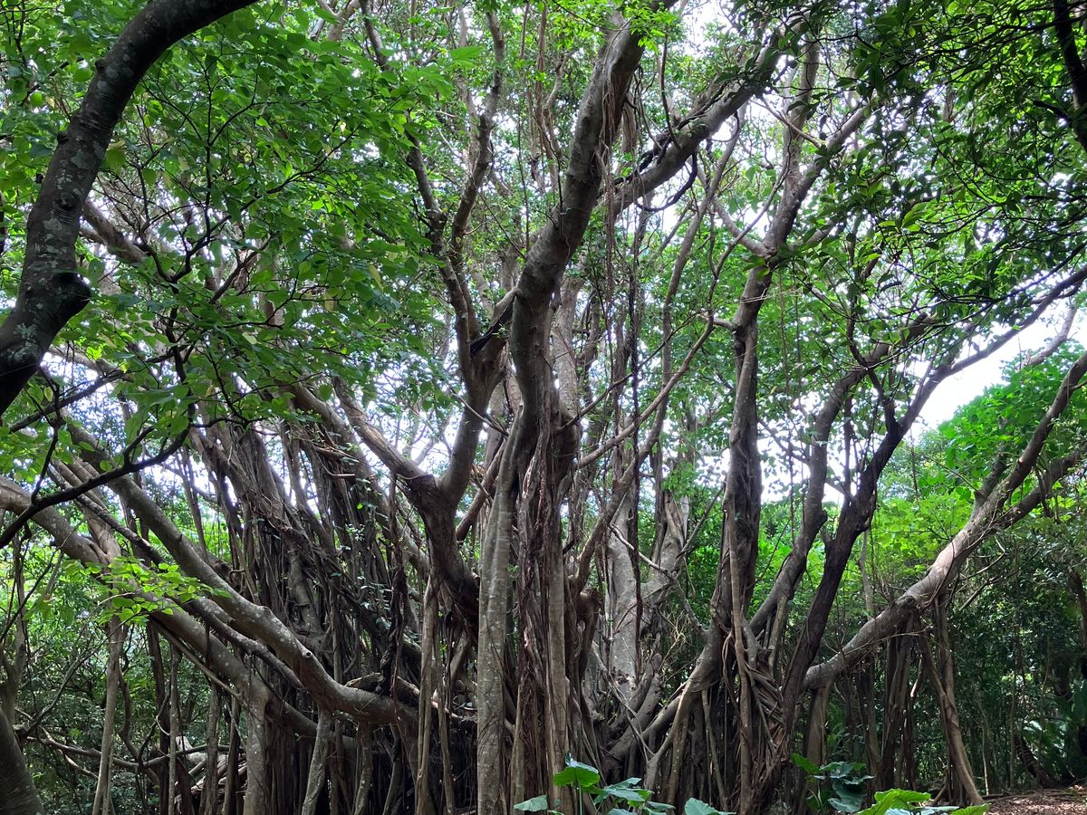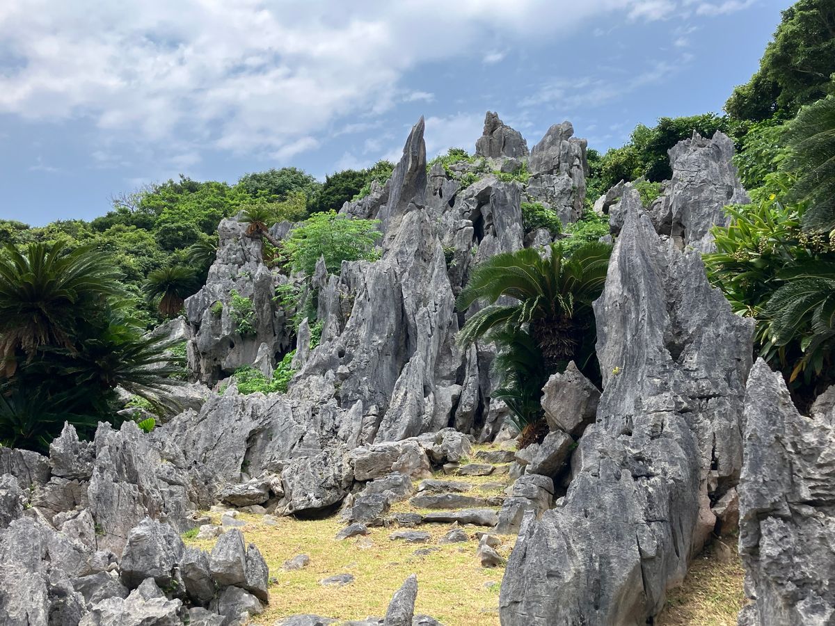 歩きやすい靴で晴雨兼用の折り畳み傘もあると安心かと思います。バスの入り口側の席に座ると海が良く見えてお勧めです。大石林山は訪問前にコースなど多少調べてから参加されると迷う心配も無いと思います。