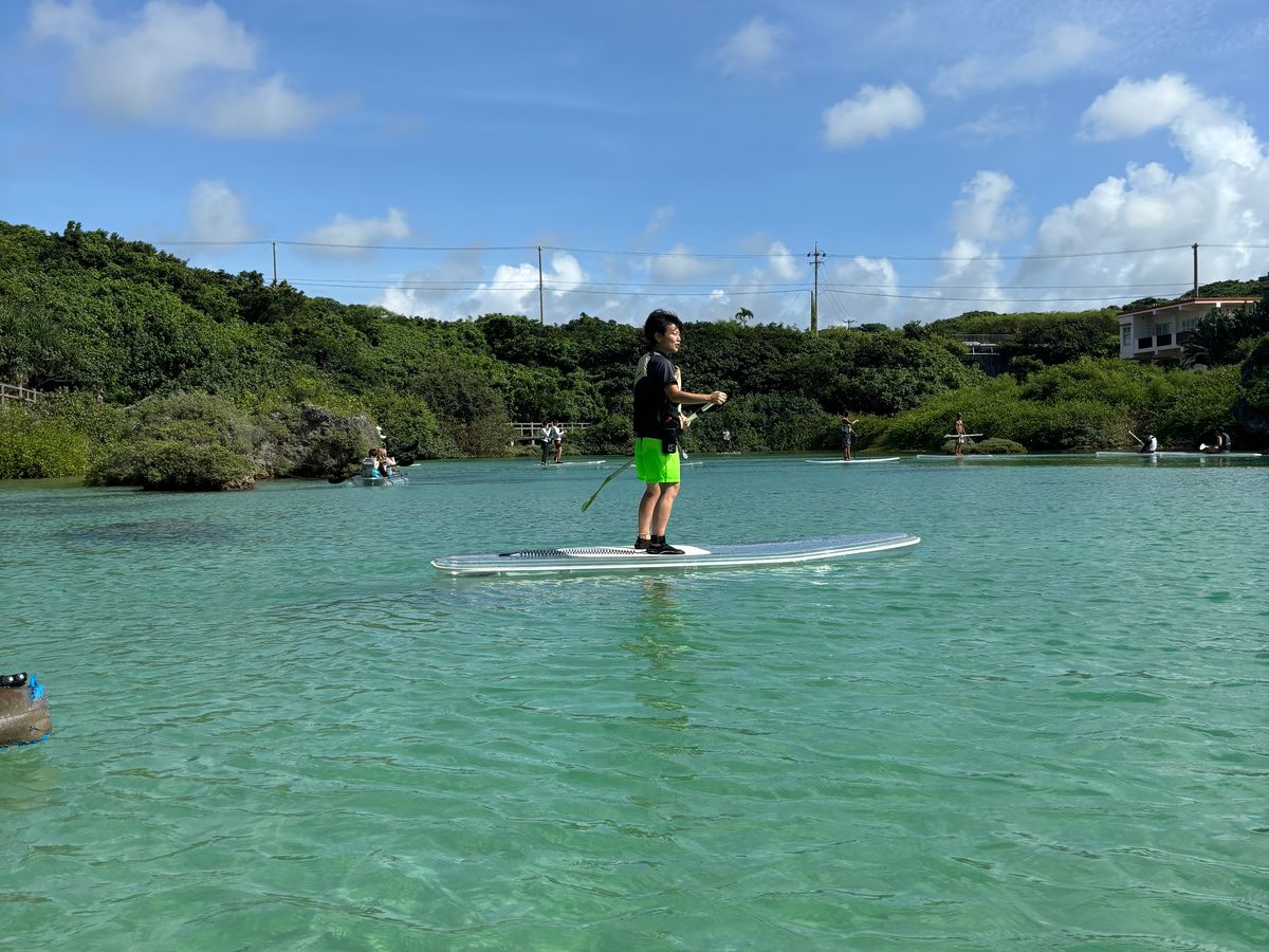 天気にも恵まれ、綺麗なエメラルドグリーンの海でSUP楽しめました。