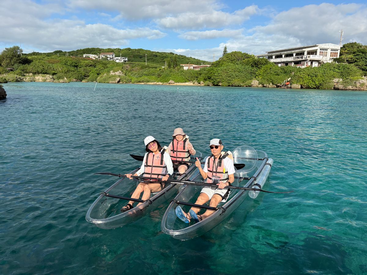 少し曇ったりしていましたが、エクセレントなスタッフさんのおかげで、素晴らしい体験をさせていただきました。カヌーは初体験でしたが、フレンドリーなスタッフさんの指導で漕ぐ事ができ、案内されたスポットでは、透明なカヌーの船底から垣間見えるお魚達に癒されました。沢山の写真やドローン撮影をしていただいた後は、30分もフリータイムで宮古の海を楽しみました。終了後、沢山の写真のデータをいただきましたが、驚いた事には、短時間でまとめ動画を作成してくれていて、その素晴らしい映像はとても良い記念になりました。スタッフの皆さんありがとうごさいました。