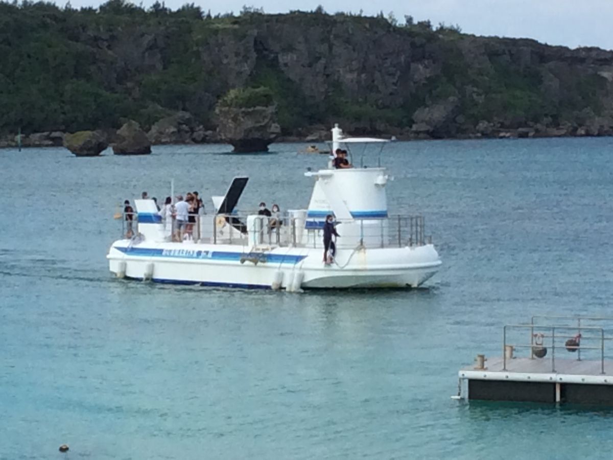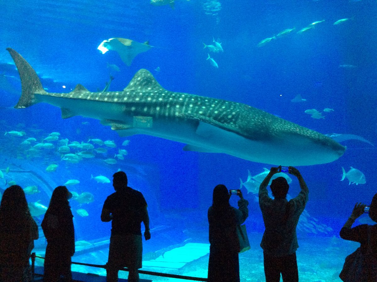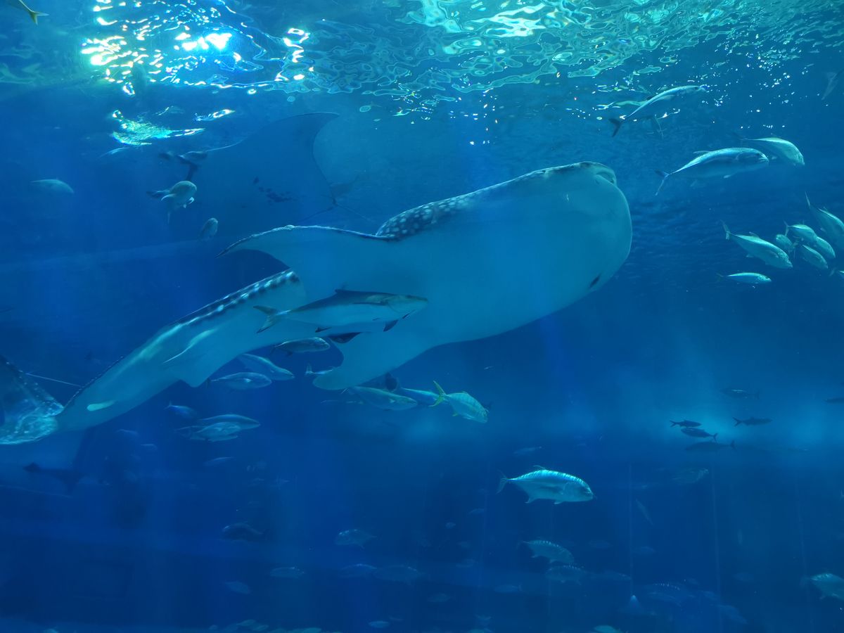 朝の8時半から夜の7時過ぎまで本当に丸1日の美ら海水族館をメインにしたツアーだが、はじめに行った万座ビーチの半潜水型ボートでのサンゴ礁と熱帯魚鑑賞が思いのほかよかった。海に入らずにシュノーケリングしているような気分を味わうことができる。次の古宇利島への大橋は宮古島に比べると直線でアーチ形の美しさには欠けるが天気が良ければ両側の海が綺麗だろうなと思われた。水族館ではたっぷり3時間の自由散策だがイルカショウまで見ているとギリギリの時間。わかってはいたけれどジンベイザメの大きさに圧倒される。百聞は一見にしかずとはこの事。ジンベイザメに比べると影が薄くなるがマンタの大きさも圧巻だった。最後のアメリカンヴィレッジはなくても良かったがおまけだと思えばお得感が増すし観光名所でもあるのだから見ておいても損はない。添乗のエルさんの日本語は少々意味が掴みかねたがガイドの部分は音声案内がしてくれるので問題はなかった。彼は英語の方が得意なようだった。価格の割には内容、時間的にも満足感の高いツアーであったと思う。