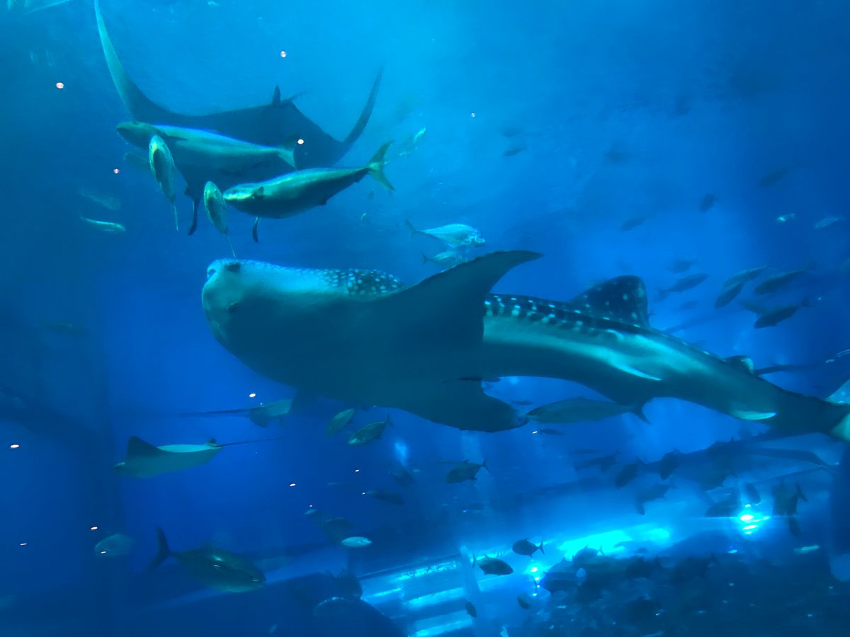 美ら海水族館は一部休止のプログラムもありましたが、空いてた上、滞在時間も長めだったので、のんびり•じっくりできました。