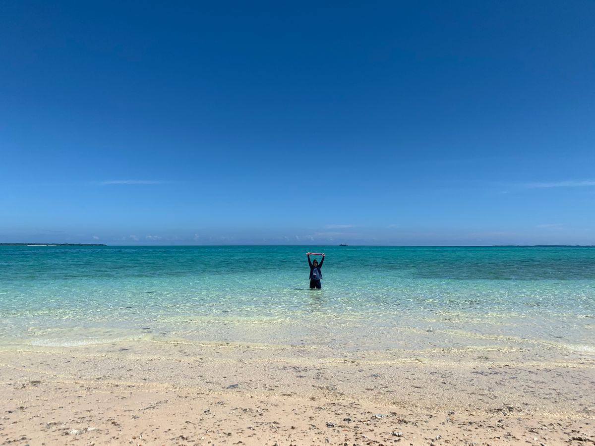 帰る直前に参加したので水着は面倒かなと思って、短パンで参加しました。ボートから海に降りて幻の島に上陸すること忘れてて…船長さんの機転で短パンがなれないくらいの水深までボートをつけてくれました!船長自画自賛でした!笑