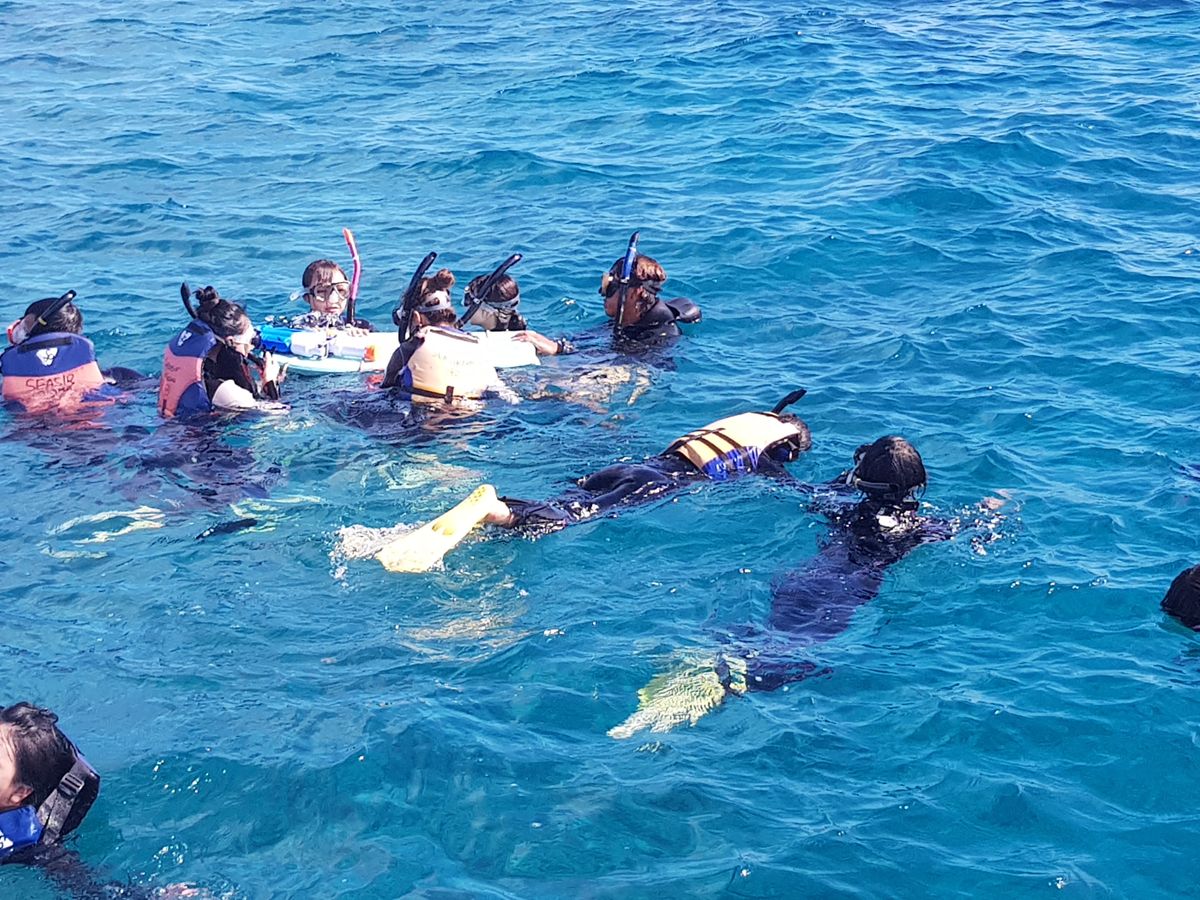 天候に恵まれ、わくわくして参加しました。海はきれいだし、透明度もインストラクターによると、まあまあの状態とのことで、シュノーケルはそれなりに楽しめました。数名のインストラクターごとにグループわけされたのですが、お魚ガイド付きというわりにはあまり説明はなく、全員集まった状態で説明してもらわないと、説明していることもわからなかったりしました。また、インストラクターが写真を撮ってアップロードしてくれるサービスがあったのですが、それもインストラクターによって撮ってくれる写真の枚数はまちまち。私たちの担当者はあまり写真を撮ってくれておらず、自分たちだと認識できた写真はわずか2枚だけでした。同じ料金でまちまちの対応はちょっとがっかりでした。