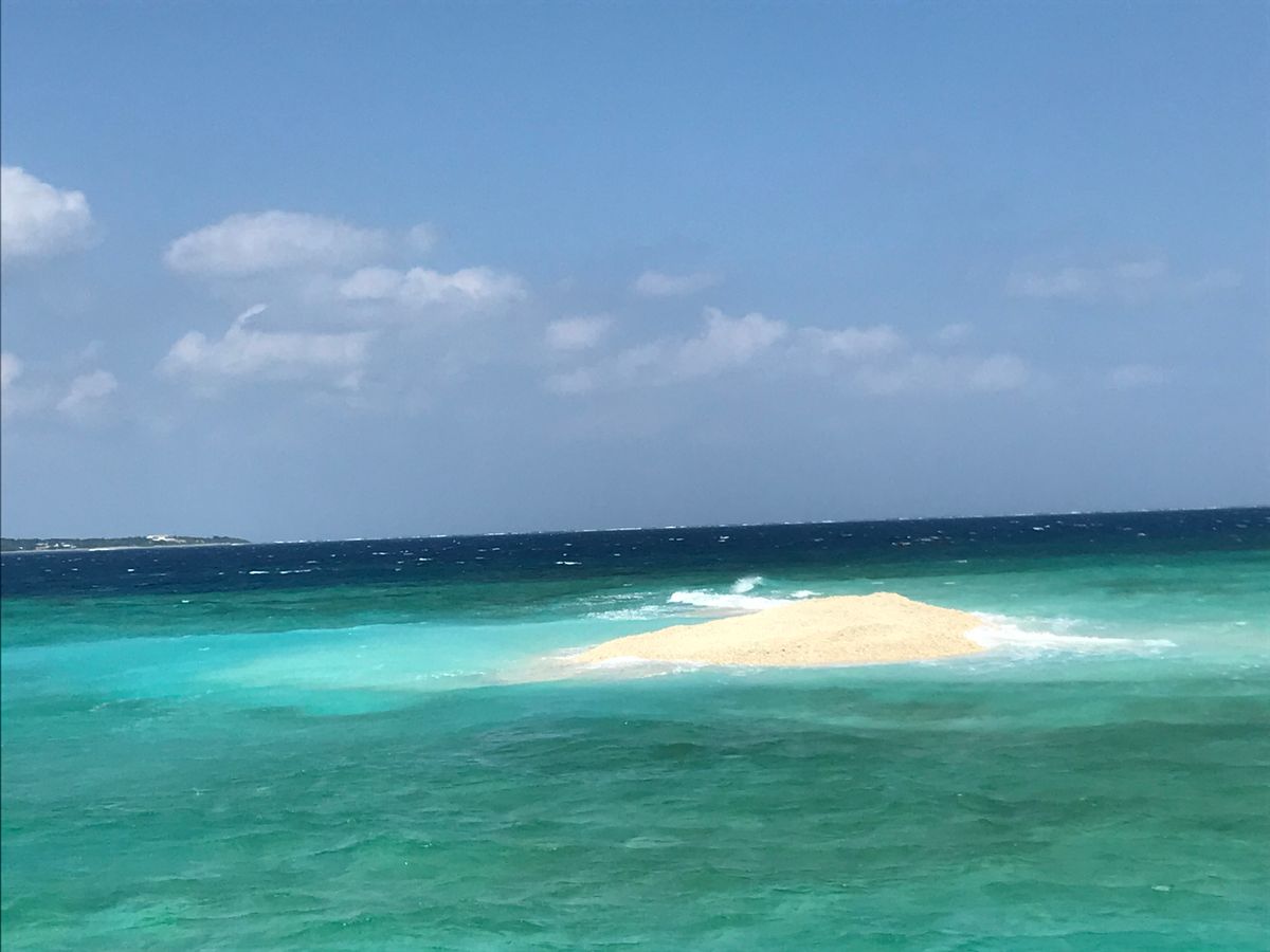 小型ボートで15分ぐらい乗ると綺麗なブルーの海と白い島が見えてきてテンションがかなり上がりました。