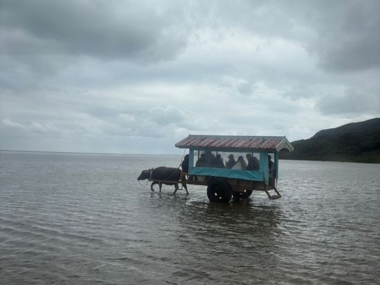 西表島から由布島へ、水牛車に乗って行くとき、三味線を演奏していただきました。ツアーに参加した日はあいにくの曇りでしたが、浅く穏やかな沖縄の海と三味線の音色がとても心地よかったです!