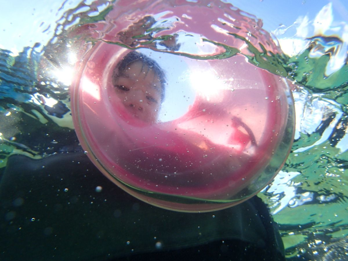 お魚を見たいので、海でバタフライしたり足ひれバタバタな人のそばからお魚が逃げていきました。足ヒレが顔に当たることもあるので、気をつけてほしいな。
