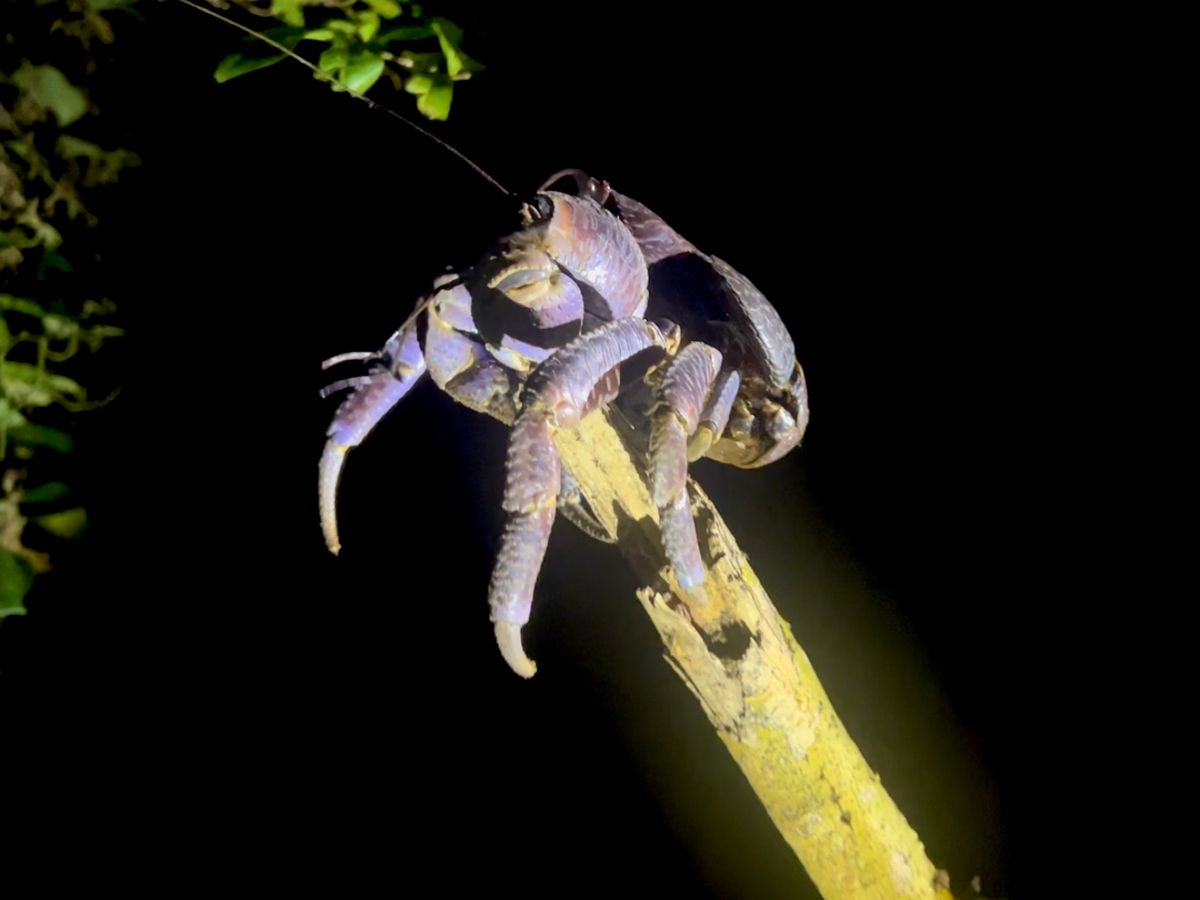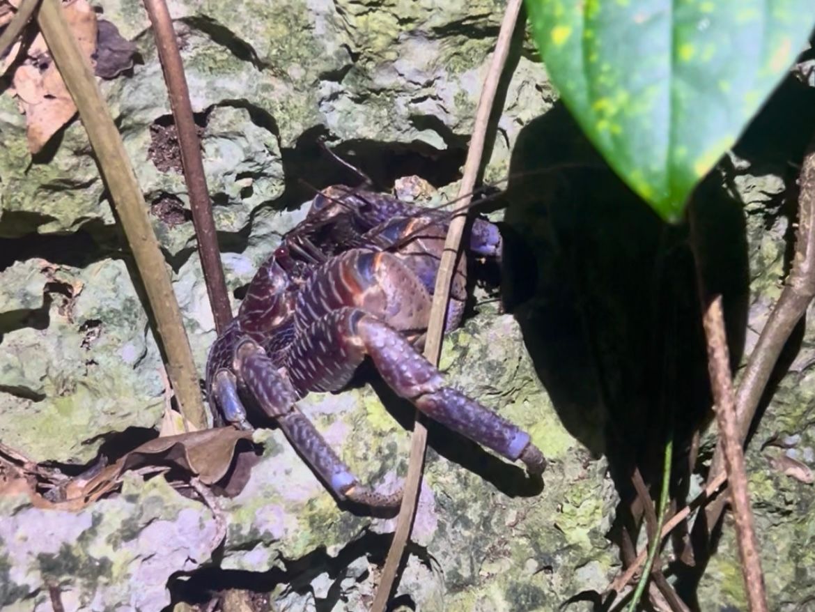 ヤシガニの持ち方も教わって恐る恐る掴んでみると、とても嬉しそうでした。