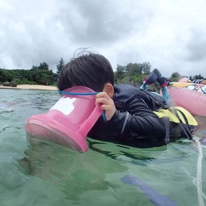 5歳にシュノーケリングはハードルが高かったのでカヤックの上から覗いていましたが、魚を捕まえてたくさんカヤックの中に入れてくれました。かなりそれが嬉しかったようで、はじめてお魚を持って楽しそうにしていました。