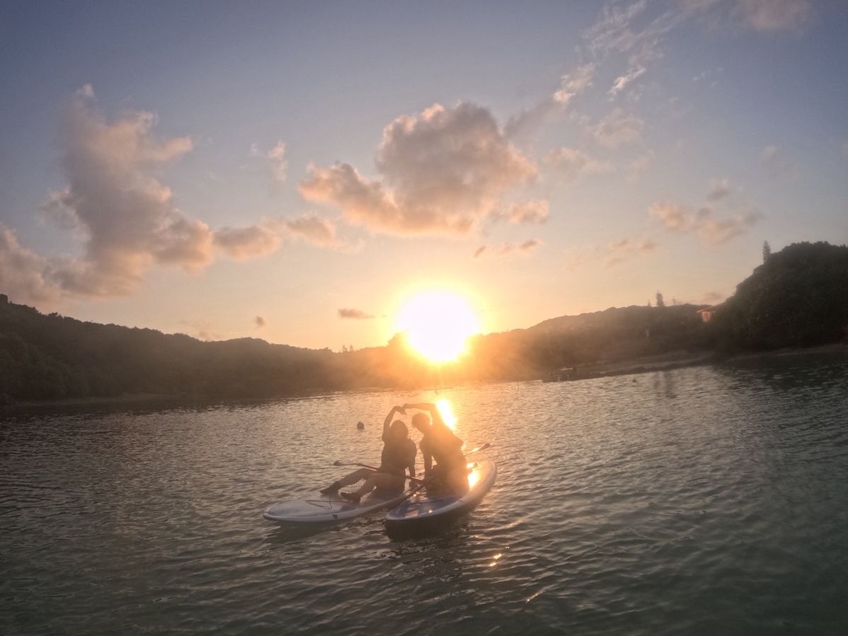 直前までの天気予報では曇りの予報でしたが、無事サンセットの時間帯には雲がなくなり綺麗なサンセットを見ながらサップをすることができました。
