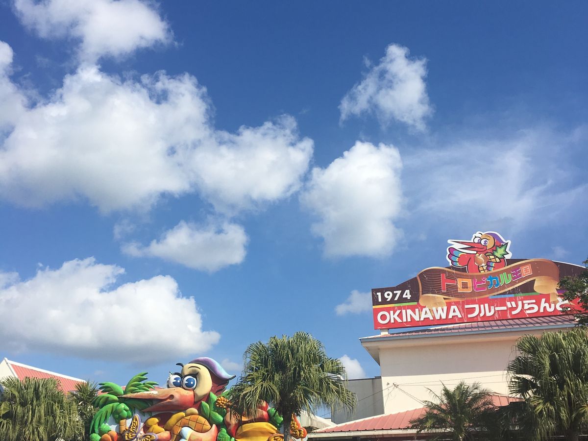 二日目に名護パイナップルパーク、フルーツらんど、美ら海水族館、古宇利島、アメリカンビレッジへ。
