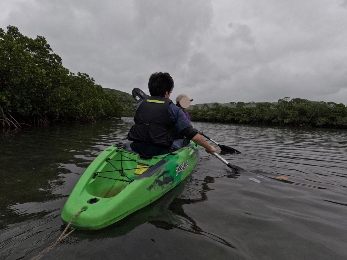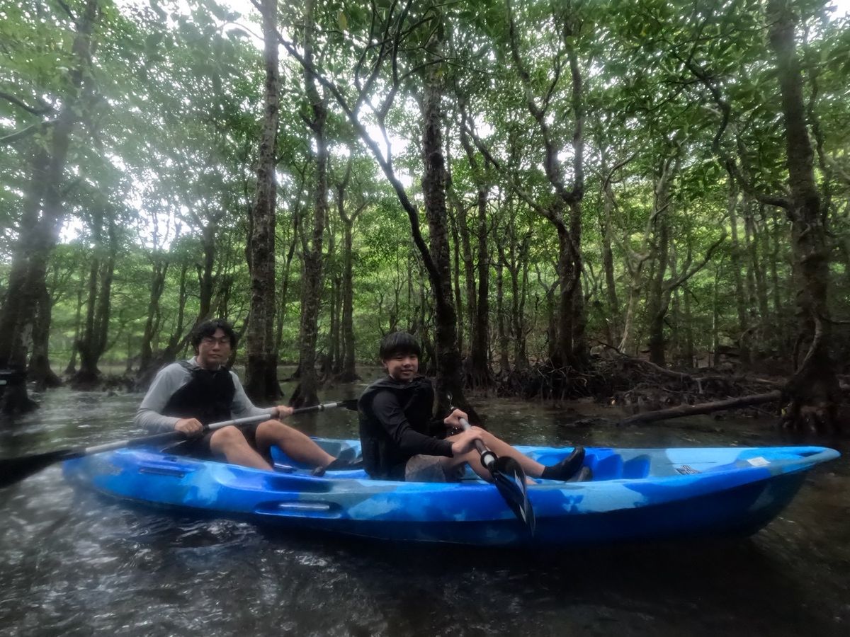 マングローブカヌーでは、水をかいた時に水が跳ねて上半身もかなり濡れるので上の着替えもあった方がいいと思います。
