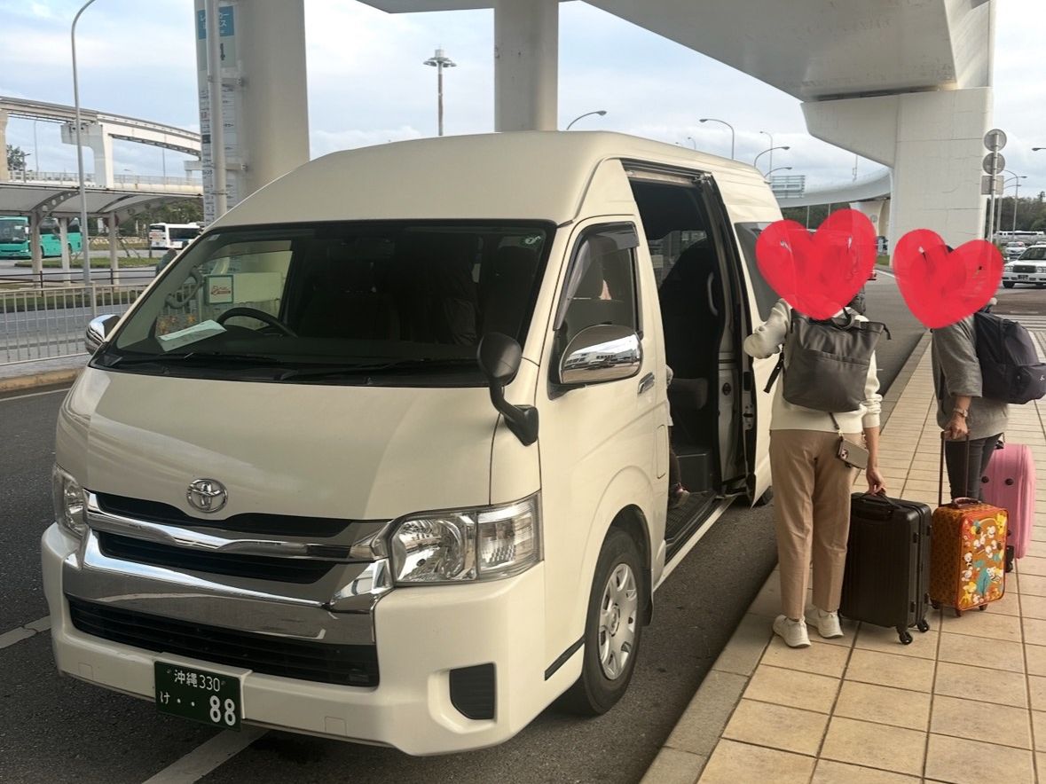 那覇空港の手荷物受取場から出たところでドライバーの方がネームボードを持って待っていてくださり、歩いて1分ほどでハイヤーまで案内してくれました。