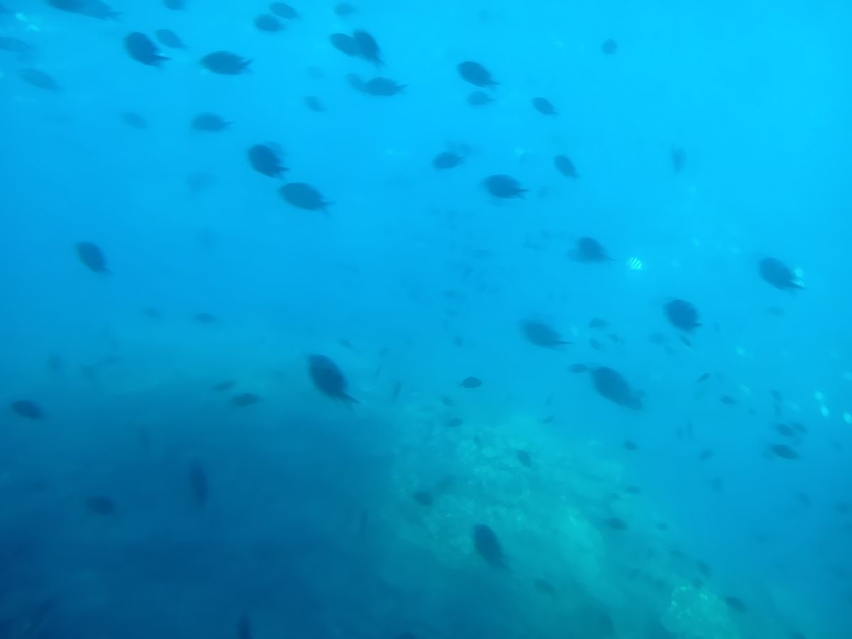 天気はくもりでしたが、透き通ったブルーの海の中は魚もいっぱい。とてもきれいでした。