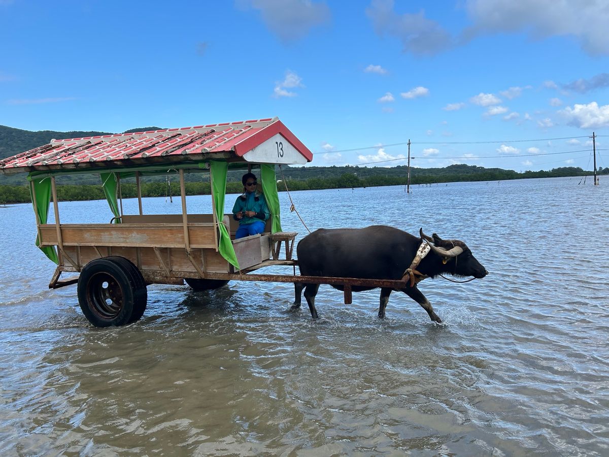 カヤック体験後は、お昼休憩後、バスで移動して水牛車に乗って由布島へ!三線の音色を聞きながら海を渡る素敵な体験ができます!混雑を避け、自然と向き合う時間を大切にしたい家族におすすめの、冬ならではの西表島ツアーでした!
