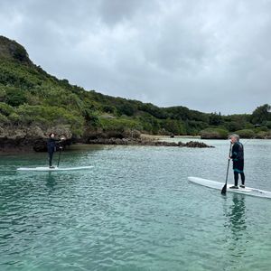 とても美しい海 少し曇っていましたが寒くはありません。優しく親切なスタッフさんの指導のもと、立ってSUPを漕ぐことができるようになりました。最後は2人で湾の内をあちこち探索できました。ぜひまた訪れたいと思います。こんどは孫も連れてこようかな。ドローンでの撮影もいただき最高な体験でした。