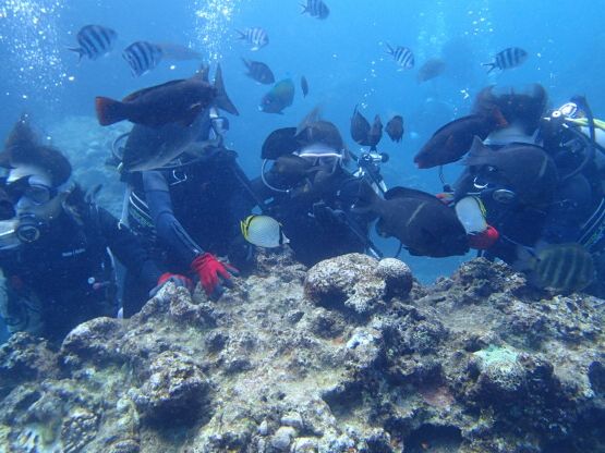 いざ海に入って、呼吸が苦しくてパニックになりそうになると、優しくパニックにならないようにガイドしてくれて5人で無事にダイビングを終えることができました。
