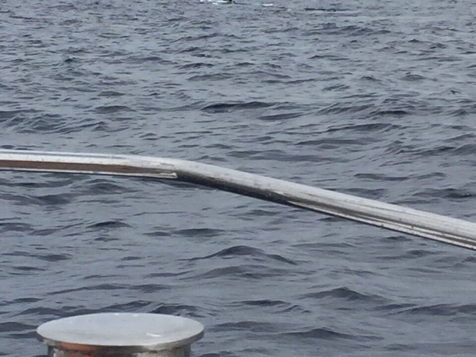 しばらくすると突然ガイドさんが、大きな声でクジラ発見‼︎と吠え、拍手喝采。単独のザトウクジラを追いかけて、数回、尾を見て、最後にジャンプまで。しかしながら、どれも距離が遠く、迫力に欠けたのが残念でした。
