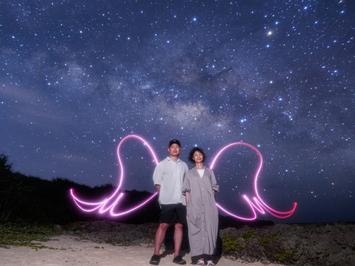 満点の星空の下、息子と一緒に撮った写真は一生の宝物です。