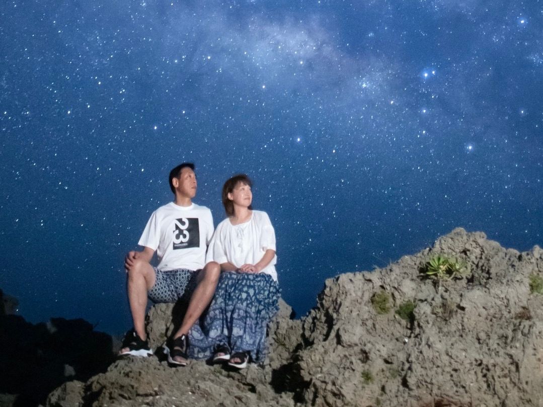 星と海と、自分達。こぼれ落ちそうな星空の下で写真が撮れるなんて最高です。