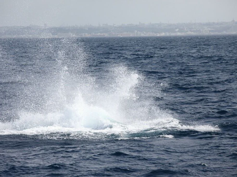 天気が良く、青空、青い海。船の舳先からクジラの白い潮、黒の大きな身体、尾びれが見えて大興奮しました。船で追いかけ、何回か身体が見えてました。船は揺れましたがよかったです。