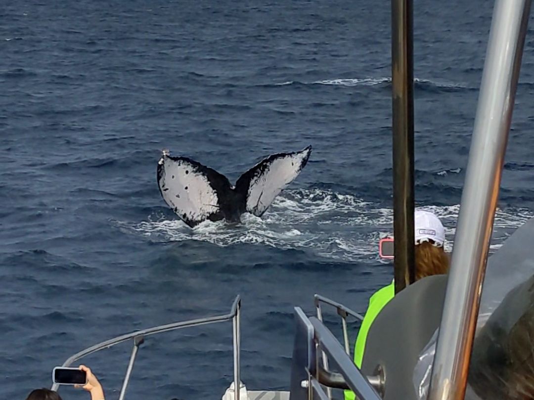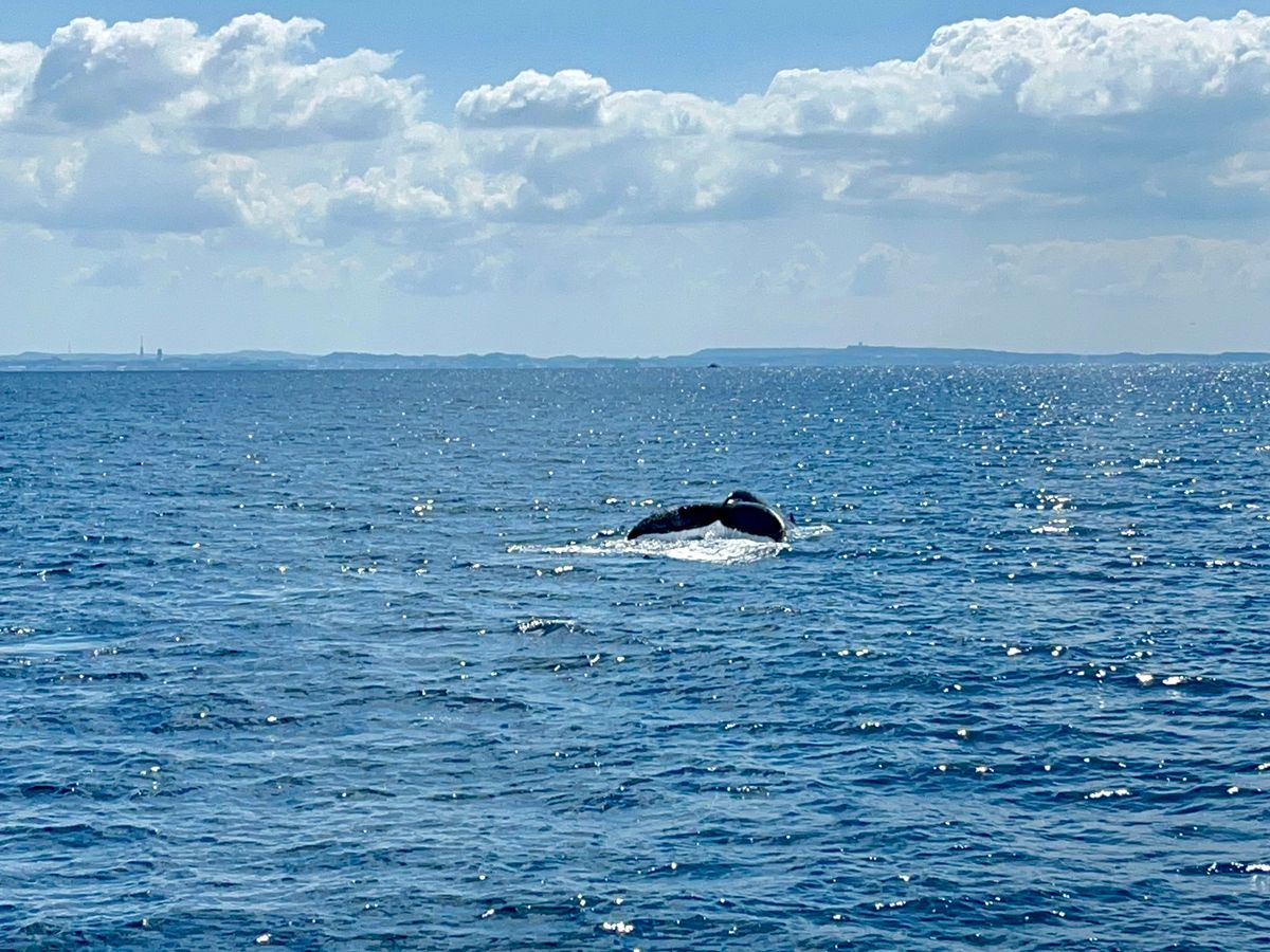 鯨の姿がなかなかみつからない中、しぶきを見つけてはその方向に向かい、時間の許す範囲で、見事に近距離で鯨の尾鰭を見ることができました!乗組員の皆様にも感謝です、ありがとうございました!