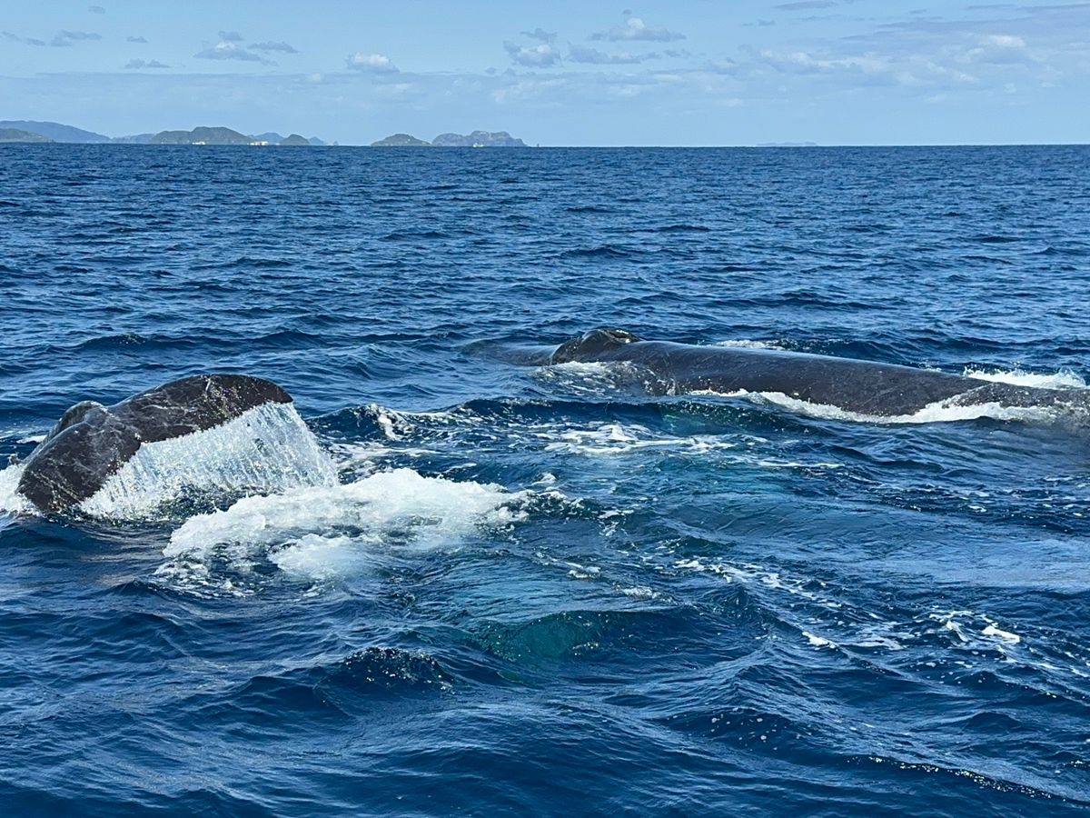 みなとから出港して約40分。まずは鯨の潮吹きを発見。尾をあげて潜りました。しばらくすると、目の前にジャンプ!!!感動しかありませんでした。