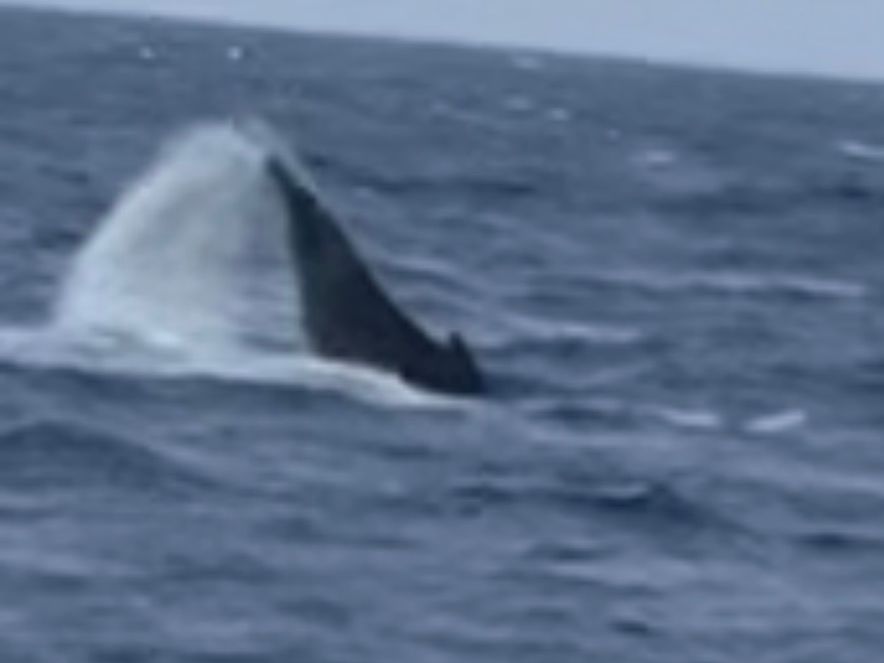 海面に上がる汐吹き見た瞬間、テンションが上がりあとは尾びれが上がるのをスマホカメラを構えて数分。