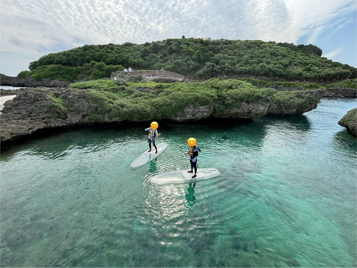 今回が初めてのsupで最初は不安でしたが、スタッフの方々が皆さん笑顔でとても優しく教えて下さったので、安心してすぐにボードの上で立つ事ができました。風が強かったのですが、入江になっていて波の影響をあまり受けない場所でやったので、漕ぎやすかったです。一度バランスを崩してボードから落ちてしまったのですが、スタッフの方がすぐに駆けつけて救助して下さり、全然怖くありませんでした。クリアsupだったので、ボードが透明で様々な種類の魚達がくっきり見えました。ニモ(クマノミ)も見つけることができました!最後に、写真やドローン動画をたくさん頂き、とっても良い思い出になりました。ありがとうございました。