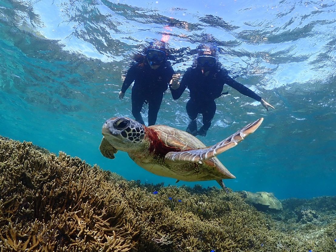 初めてのシュノーケリングはドキドキだったと思いますが、ウミガメや色鮮やかな魚たちに出会えて本当に素晴らしい体験になりましたね!