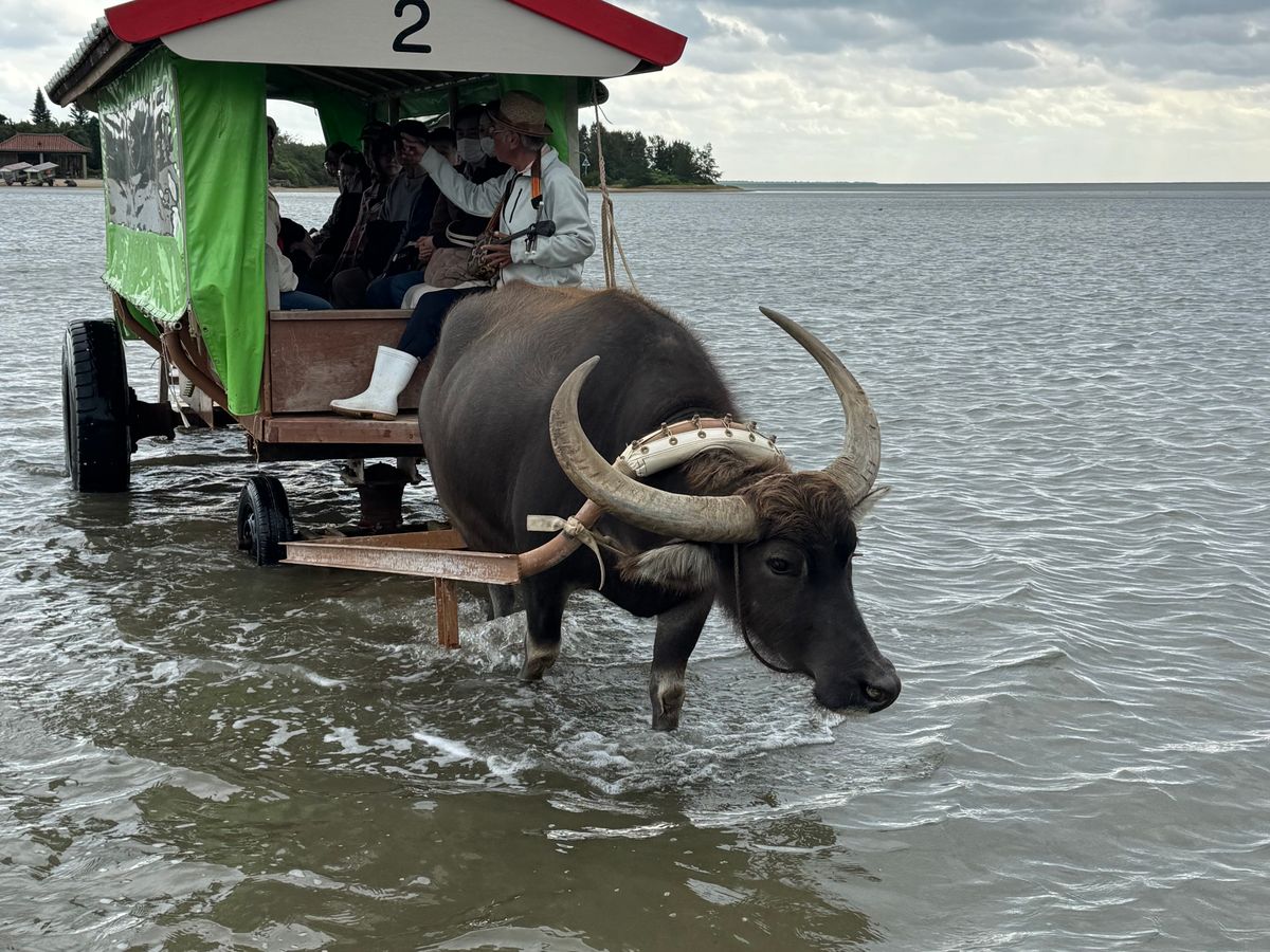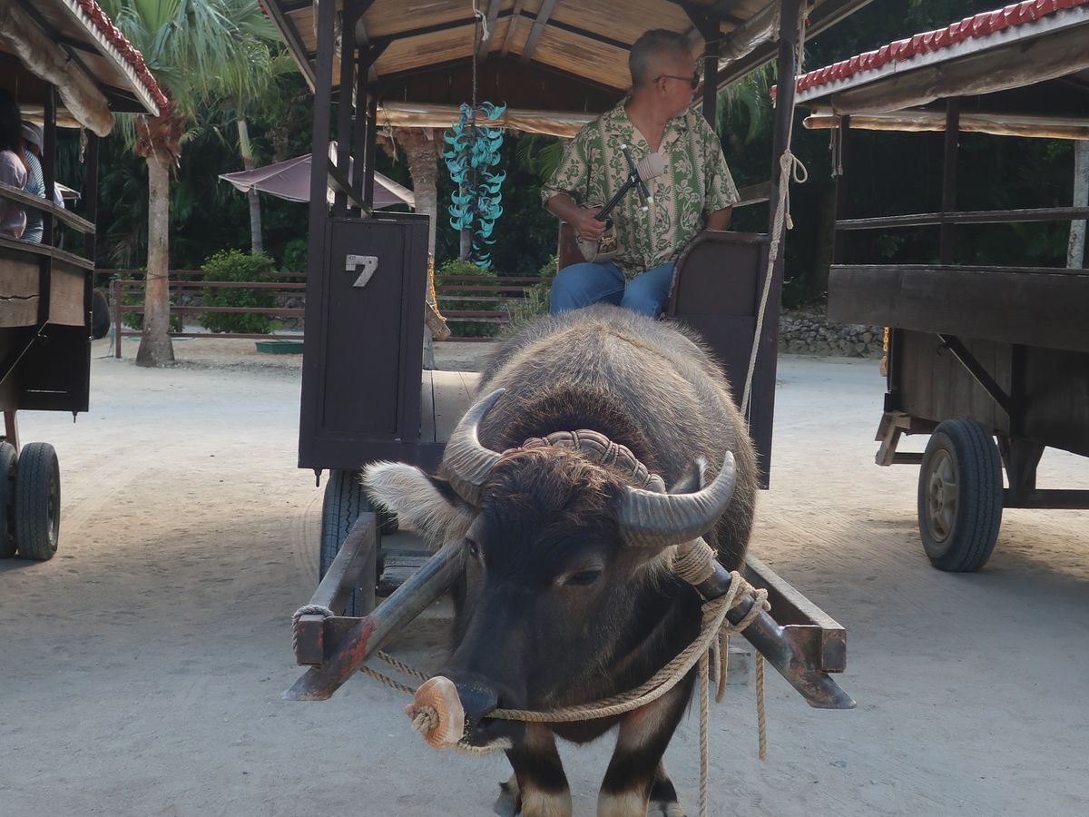 水牛車はとってものんびり。青い空、赤い花、白い砂、水牛のつぶらな瞳、全てに癒されました。本当に行って良かったです。