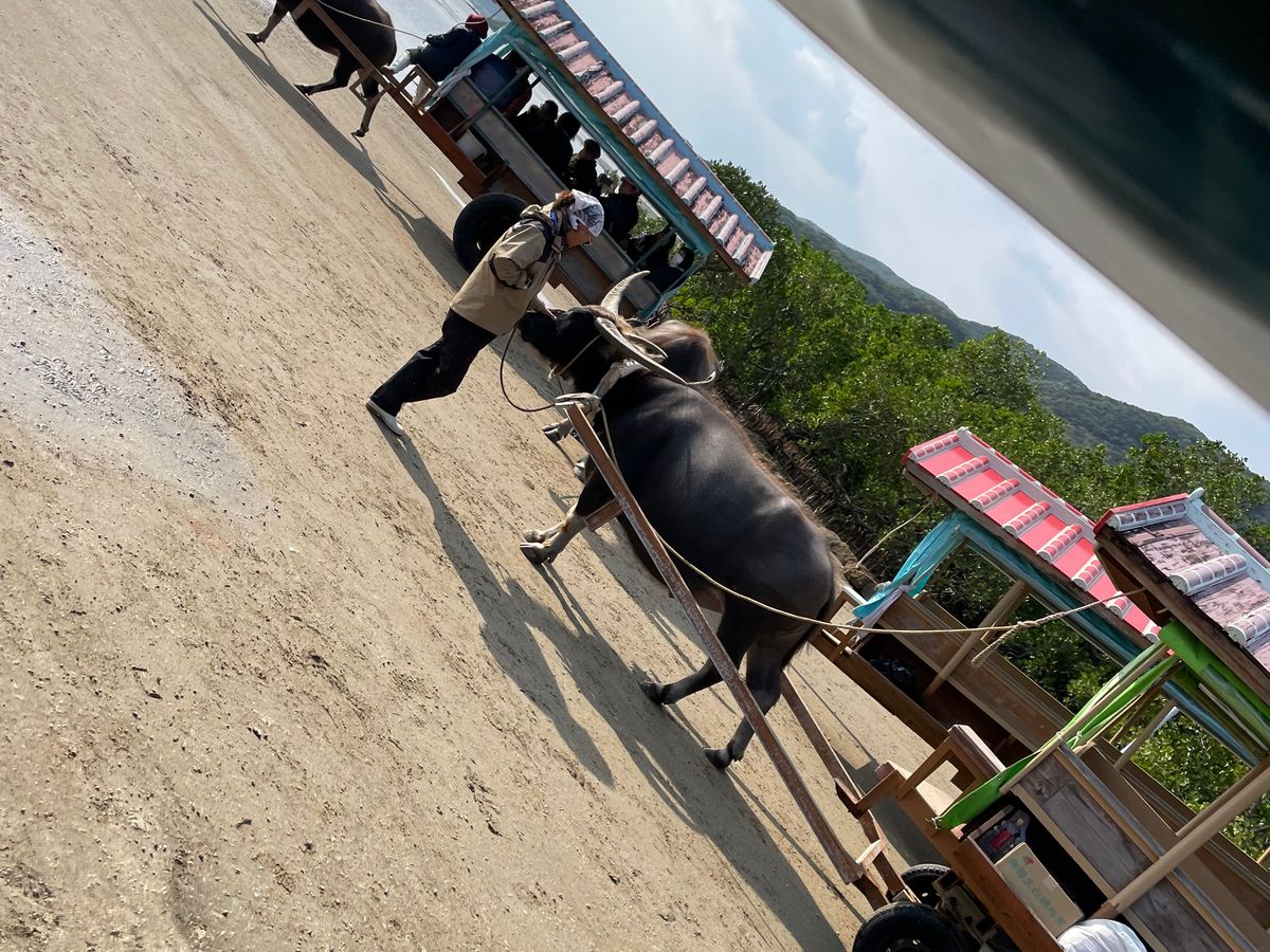 水牛車には2回乗ることができましたが、車を引いてくれる水牛さんを応援し、三線と歌を聴かせていただき楽しかったです。島の観光では地元出身もそうでない方も若者が沢山働いていて、皆この環境が大好きなんだなと伝わってきてこちらも暖かい気持ちになりました。