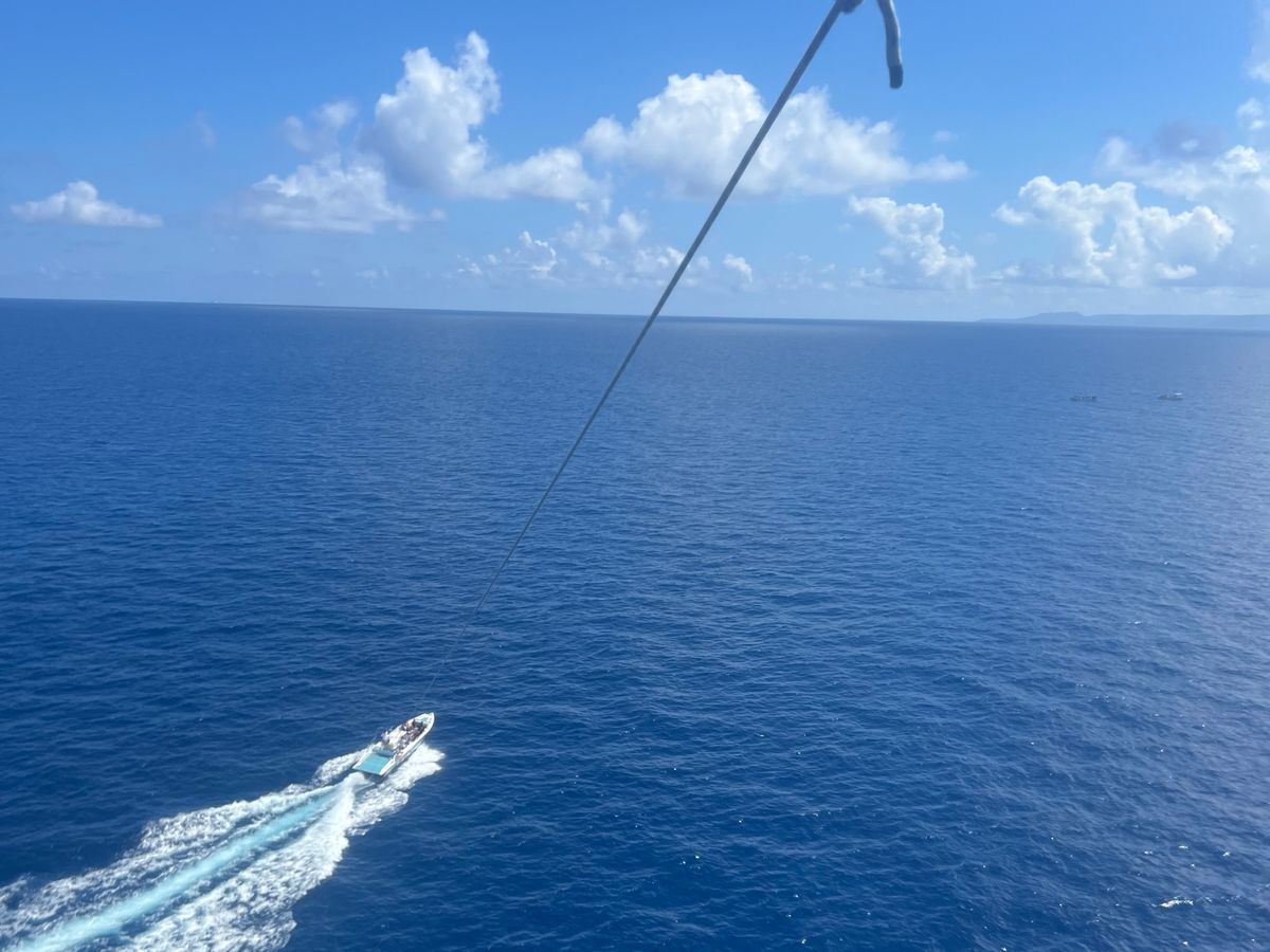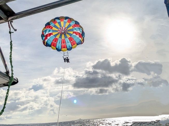他の方のアクティビティの時間も含めて計2時間弱ほど海上にいましたが、今回程の大きな揺れは早々ないとのことでした。初めてのパラセーリングできれいな景色も見られて、大変良い思い出になりました!