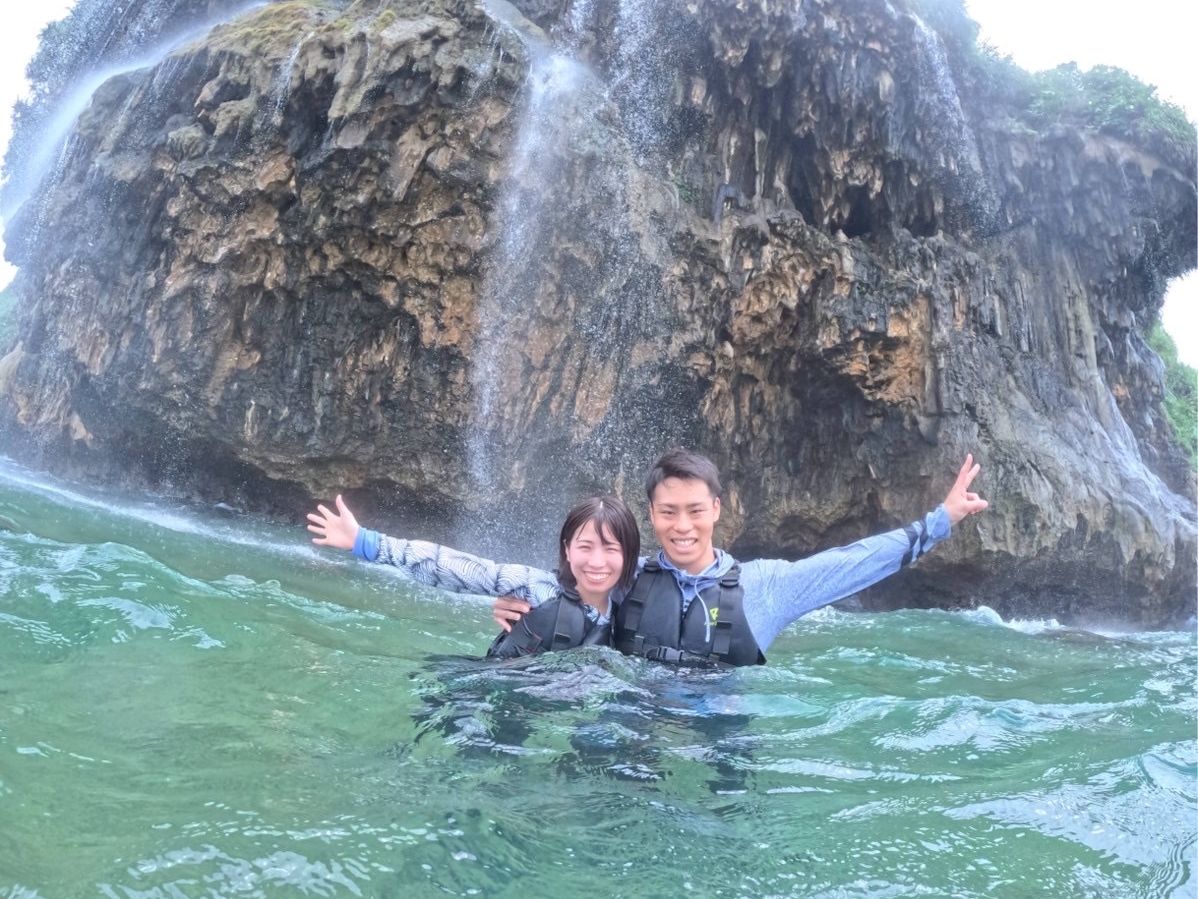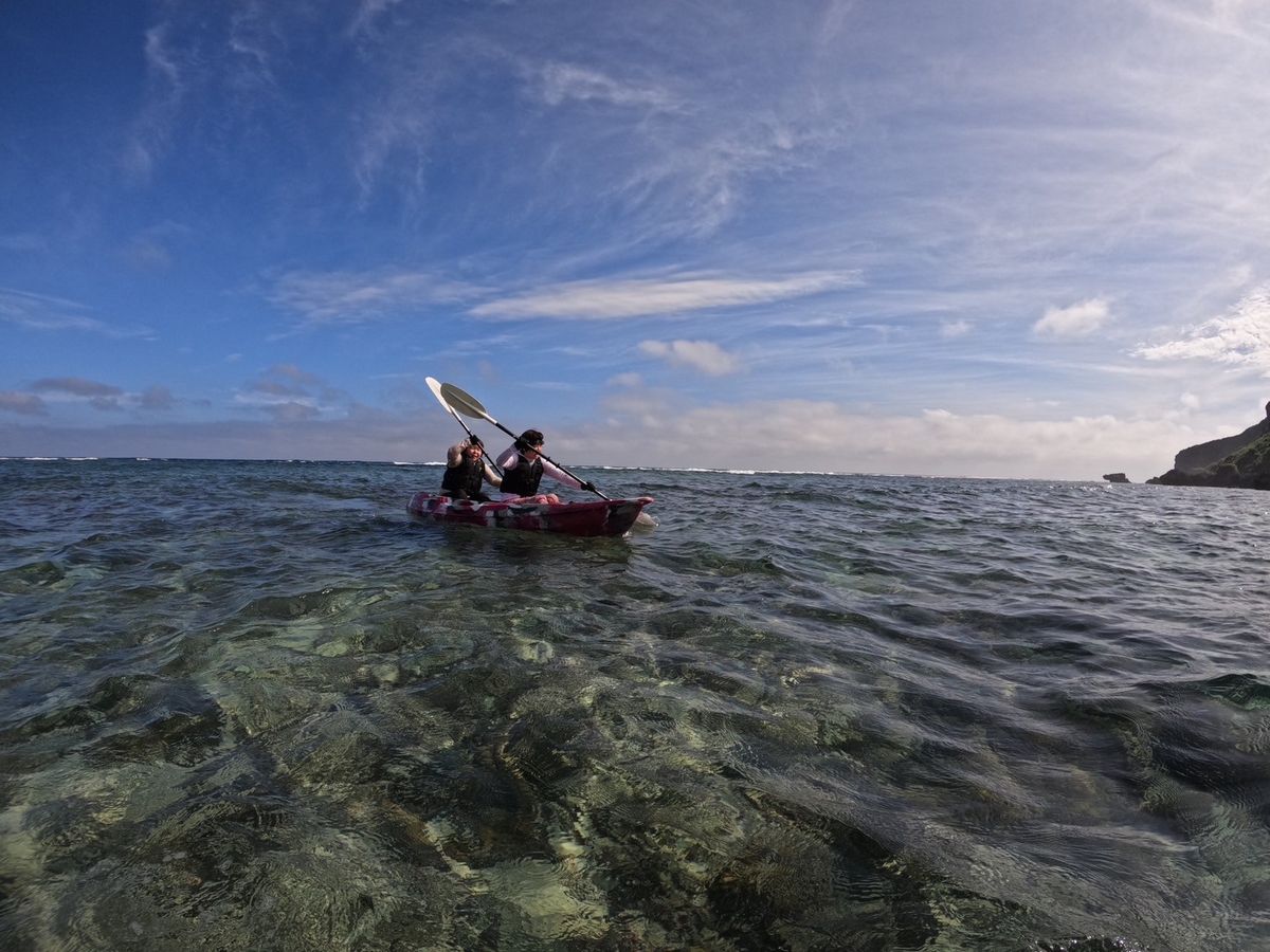 海からしか入れない鍾乳洞にカヌーで行きました。天候が良くても干潮満潮の時間や波の状況で入れない時もあるみたいで、今回は予定していた時間より早くて参加するか迷いましたが結果行ってよかったです。年間で50日くらいしか見れないと言っていた滝も見れました。鍾乳洞に入ってからのガイドのなおさんの行動力はすごかったです。パンプキン登るとき、降りるときは力強くサポートしてもらって感謝しかありません。擦り傷してしまいましたが大した事は無いので大丈夫です。豆知識も色々と教えていただきすごく楽しい時間でした。貴重な体験ありがとうございました。