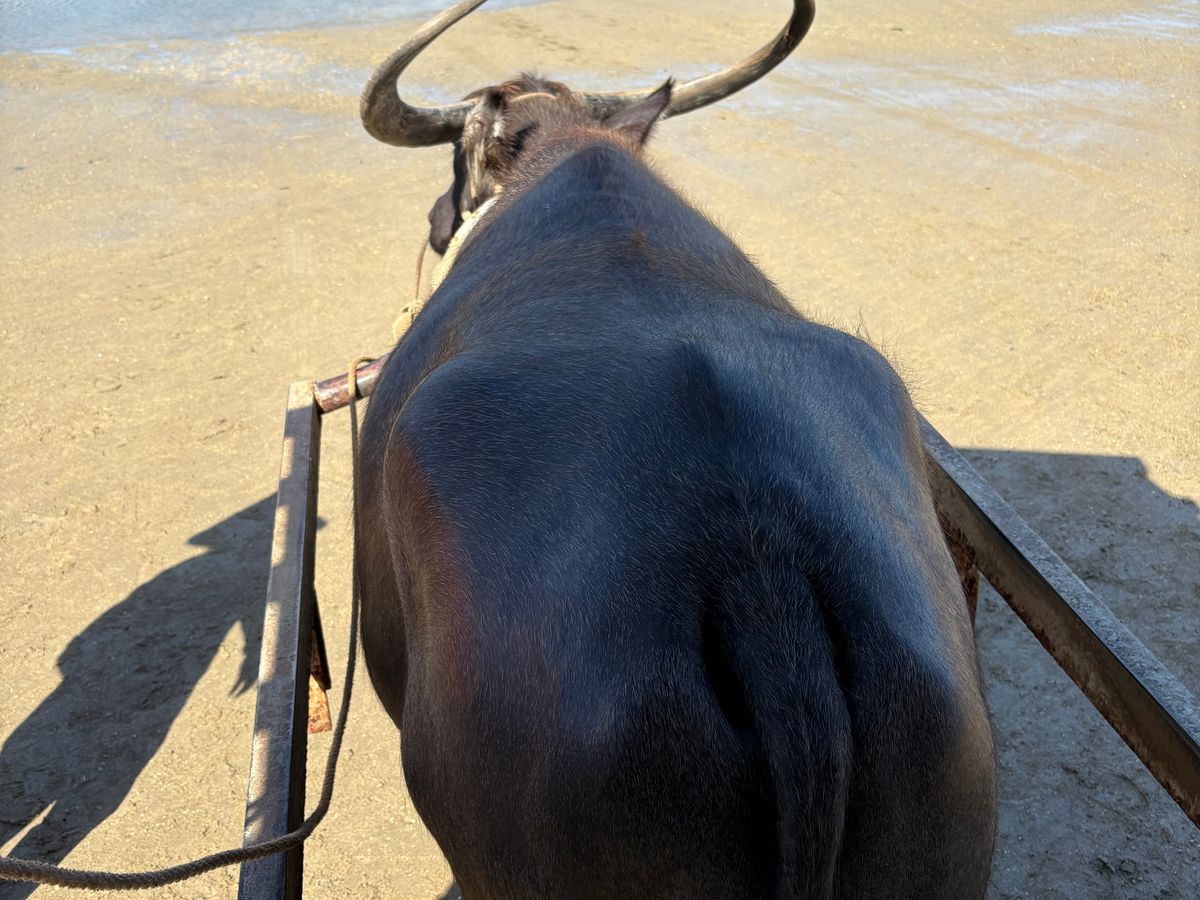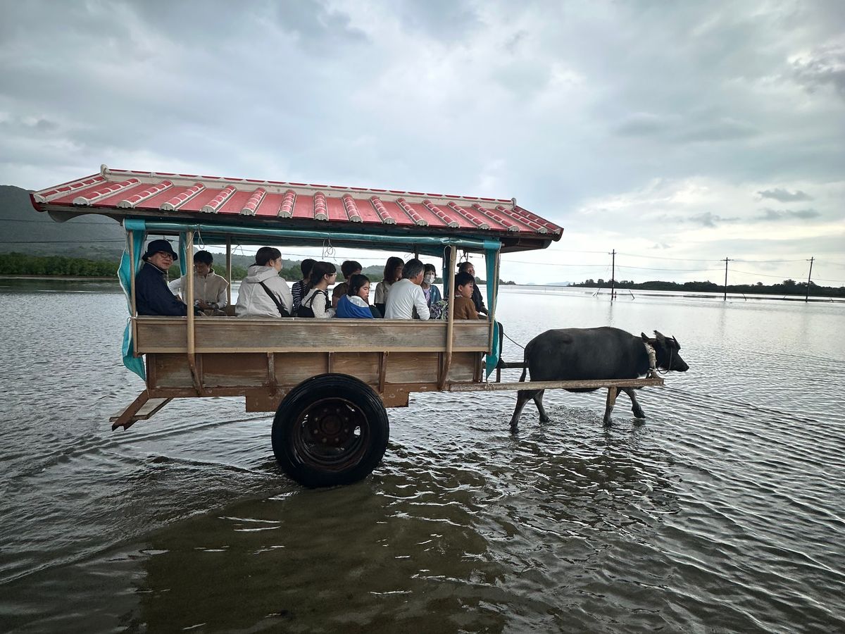 水牛に乗ってゆったりと海を渡ったり島を散歩する体験は、天気が悪くても多少寒くても、価値があると思います。