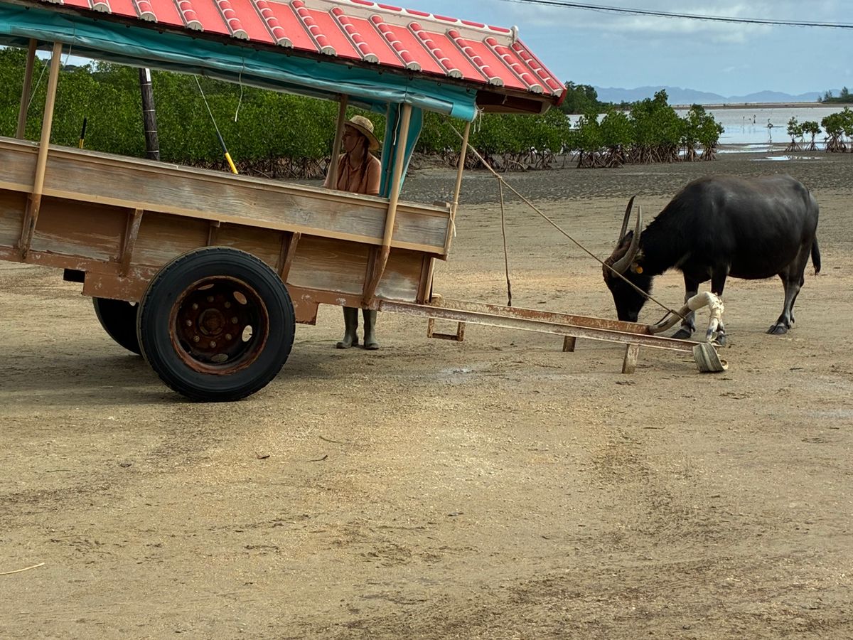 初めての竹富島で絶対に体験したかった水牛車♪雨が降ってましたが全然気にならないほど赤煉瓦の家並みや水牛くん達が最高の癒しをくれました!担当の方の説明や民謡も素晴らしかったです♡また、来れた時には絶対に体験したいです。自転車を借りて西桟橋とコンドイビーチに行きました。まず西桟橋に感動して次にコンドイビーチに着いたら晴れ間も見えて天国のようなビーチに感動しっぱなしでした。時間がなくてカイジ浜にいけなかったので次回絶対に行きたいです!