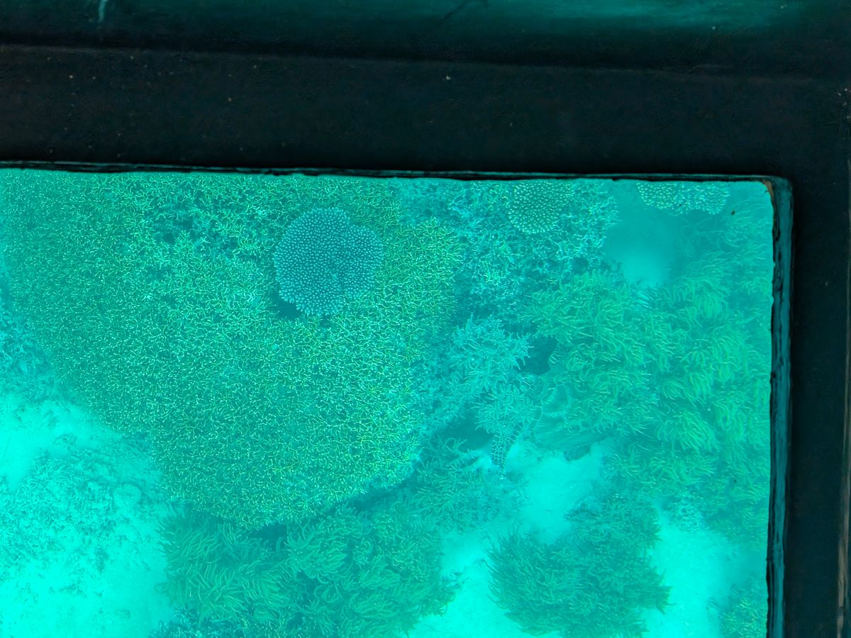 旅行前から行きたい場所だったので事前予約していました。旅行初日から天気が悪く心配しましたが、観光当日は、晴れ間も出て、海は予想していた通りで綺麗でした。グラスボートから見る海の中は、魚の様子を見ることができ、なかなか体験できないと思います。船も細かい操舵で全員が見れるようにしてくれました。ただ残念だったのは、色々説明してくれたのですが、一番後ろだったことでエンジン音が大きく聞こえなかったことです。スピーカーを使って説明してくれると良かったのですが。