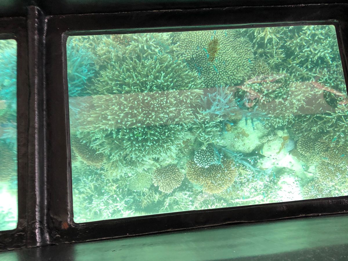 クリアな船底からたくさんのキレイな魚やサンゴを見られて感動です。後半、フリーで動けるのも面白かったです。