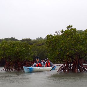 カヌーは、マングローブが風除けになってくれたお陰で、レインコートを着て風雨の中、楽しめました。