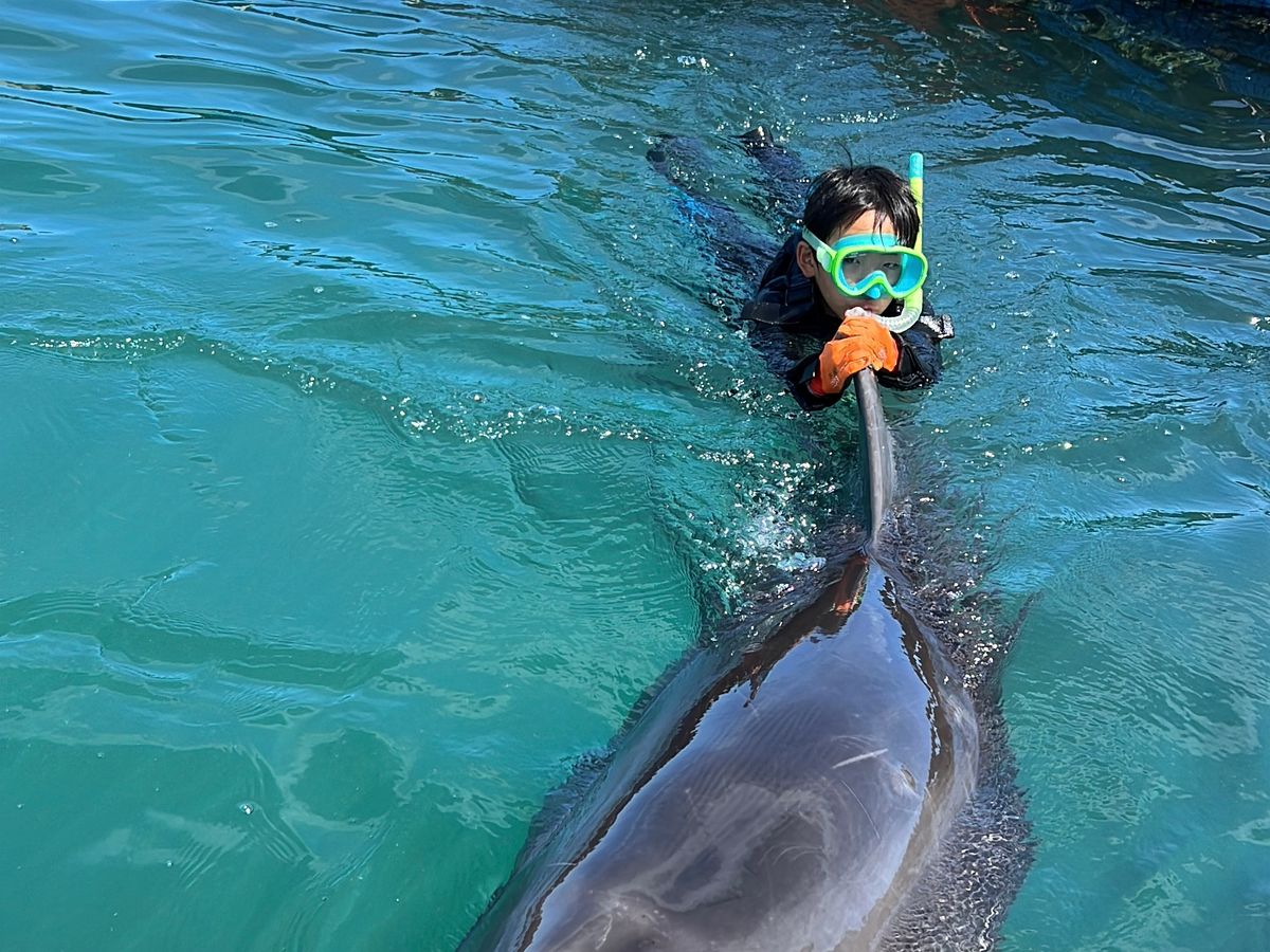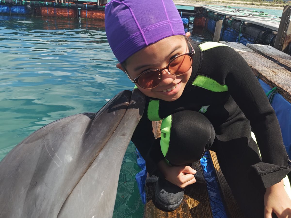 背びれに手をかけ、イルカと一緒に泳いだ時は「嬉しい〜!」が溢れちゃいました