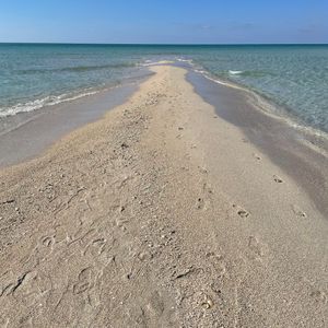 快晴の中、ボートで伊良部大橋をくぐり、たどり着いたユニの浜