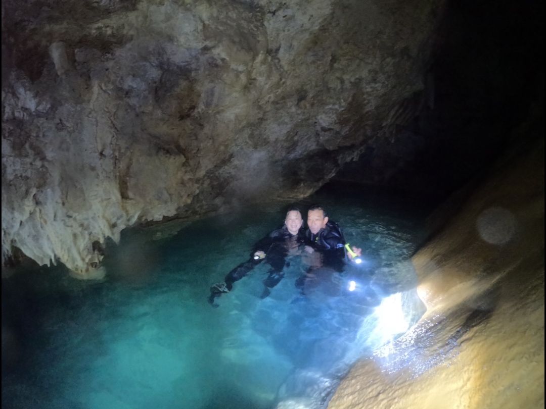 パンプキン鍾乳洞探検ツアーカヌーでアクセスを体験しました。当日は、天候は曇りでしたが、ウエットスーツの着用のため、寒さを感じる事なく堪能出来ました。